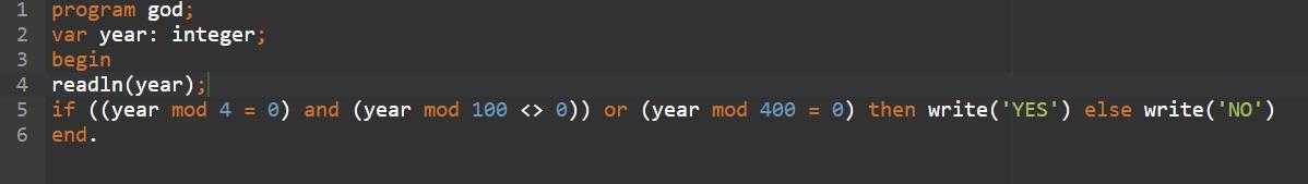 if (year mod 4 = 0) and (year mod 100 <> 0) or (year mod 400 = 0) then writeln('YES')