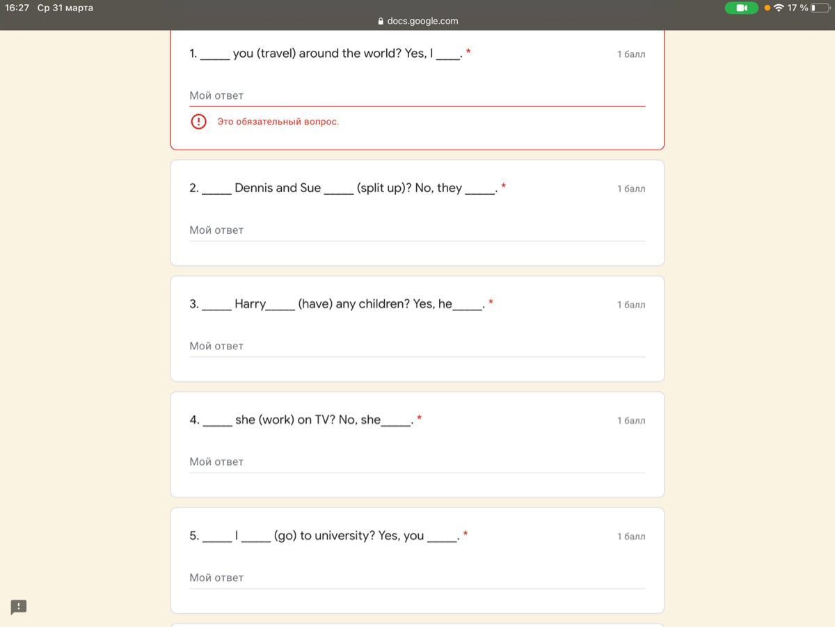 5. Complete the questions with will and the verbs in brackets. Then complete the short answers: Прошу помогите