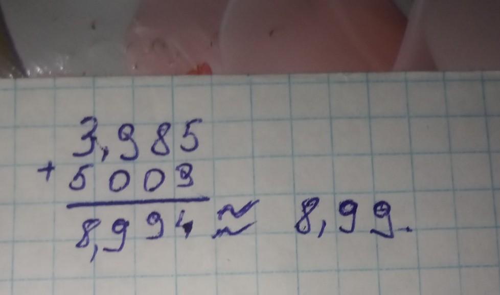 Найдите приближённо сумму чисел 3,985 и 5,009, округлив их с точностью до 0,01.