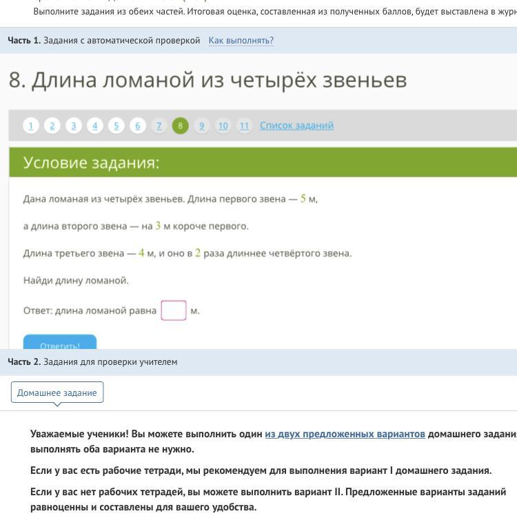 1) 5-3=2(м)-длина 2 звена.