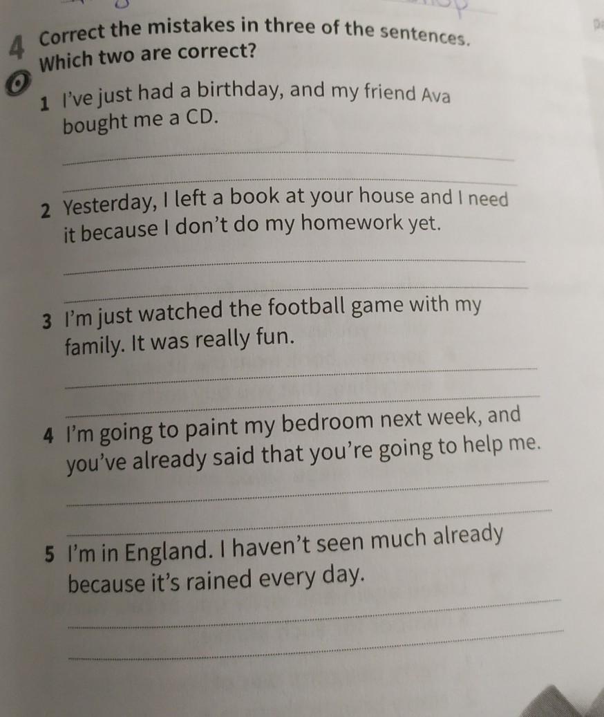 2. Yesterday I left a book at your house and I need it because I haven't done my homework yet.