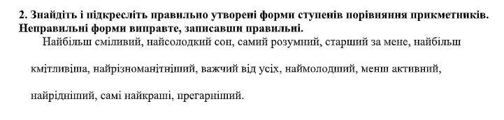 Сміливіший, найсолодший сон, найрозумніший, старший, більш кмітливіша, найрізноманітніший(правильно), найважщий, неактивний, найрідніший(правильно), найкращі, більш гарний або гарніший