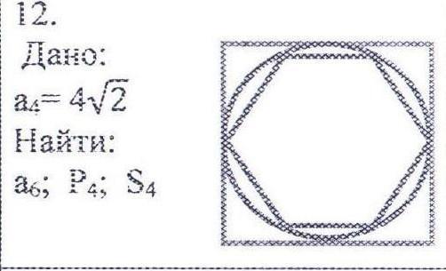 Для шестиугольника данная окружность описанная, а для квадрата--вписанная. Приравняем формулы для радиуса этой окружности