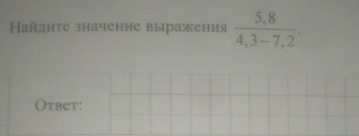 Відповідь: 5,8/4,3-7,2=5,8/-2,9=-2