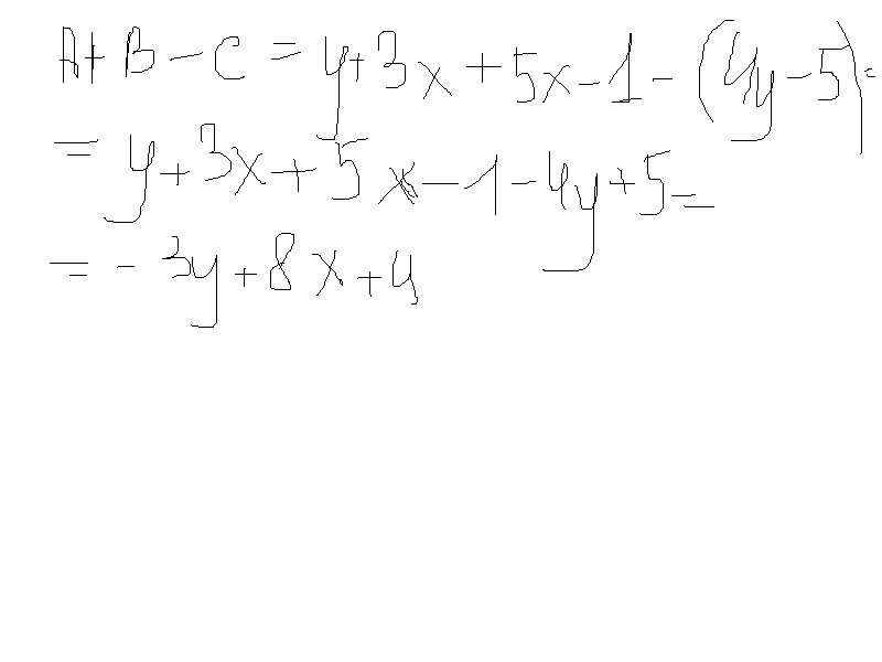 A=y+3х,В=5х-1,С=4н-5