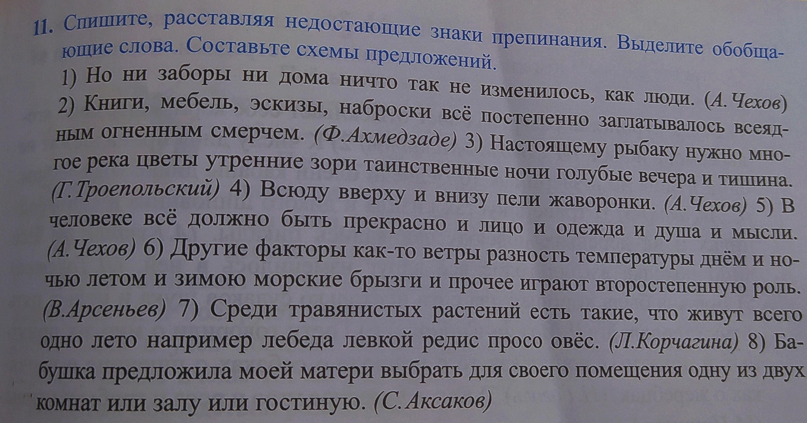 Знаки препинания расставил. Обобщающие слова выделил жирным шрифтом. Удачи!