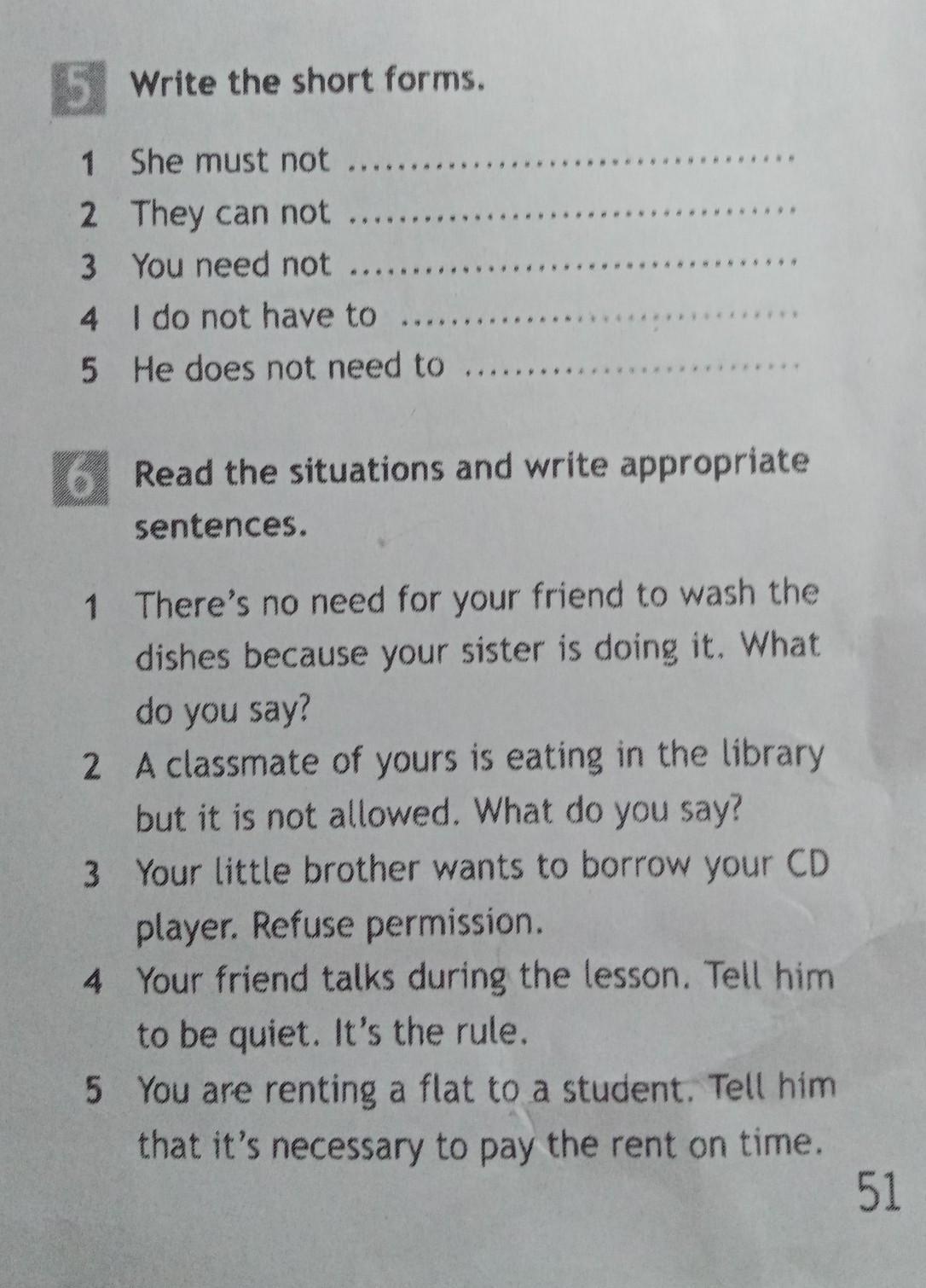 5. 1 )She must not - she mustn't