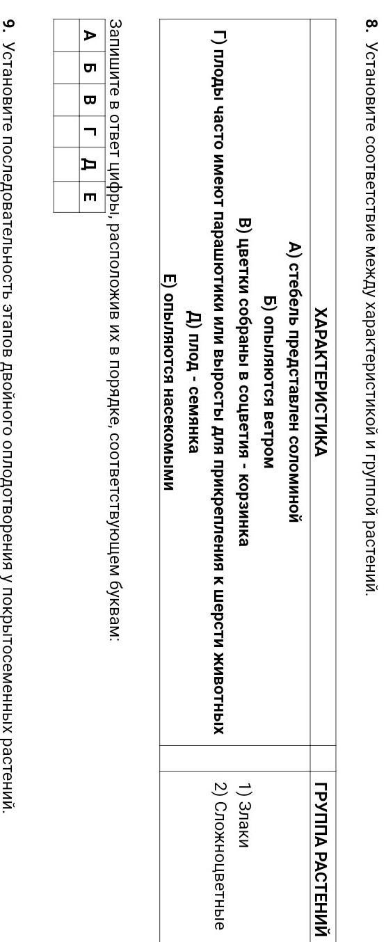 Установите соответствие между характеристикой и группой растений.