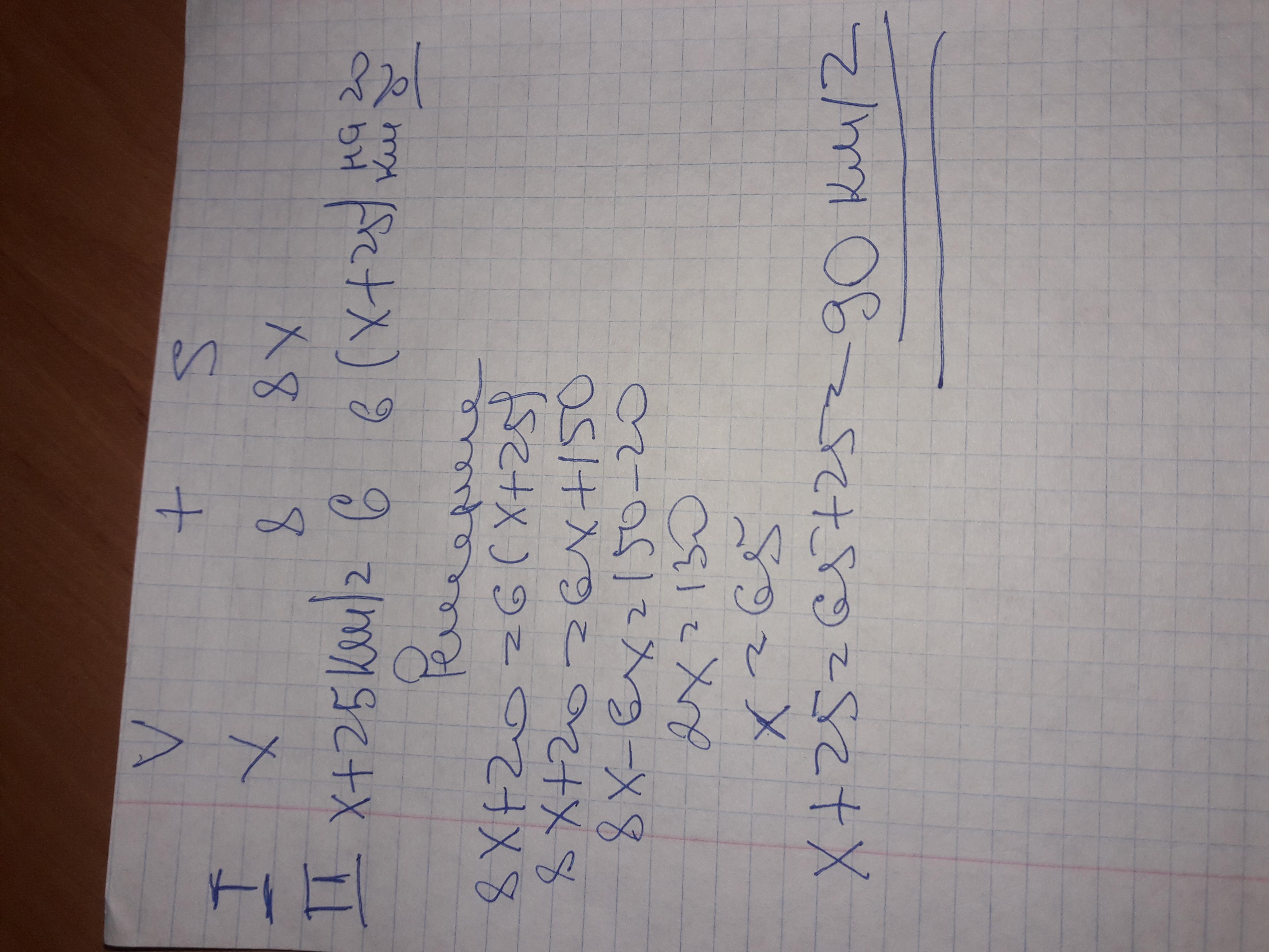 Автомобиль должен был проехать отведенное расстояние с одной скоростью за 8 часов. Но он нарушил норму на 25 км/ч и за 6 часов проехал на 20 км больше отведенного расстояния. С какой скоростью ехал автомобиль?