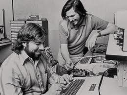 На фото Стив Возняк (сидит за компьютером) и Стив Джобс