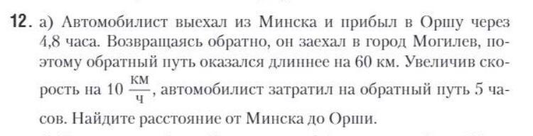 Первый путь за 4.8 ч при скорости V км/ч и расстояние X км. Второй пусть за 5 ч при скорости (V+10) км/ч, расстояние X+60 км. Решим систему уравнений.
