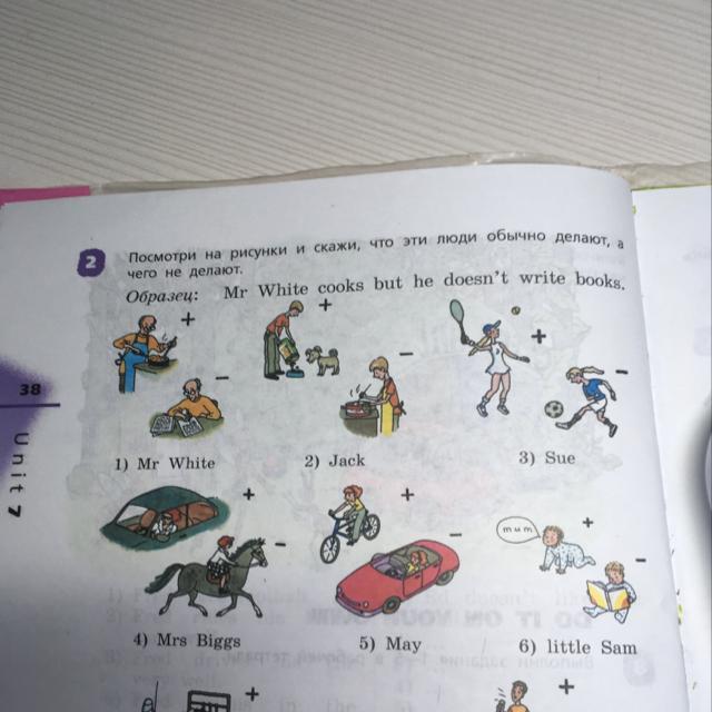 4 Mrs Biggs drives a car but she doesn't ride a horse.