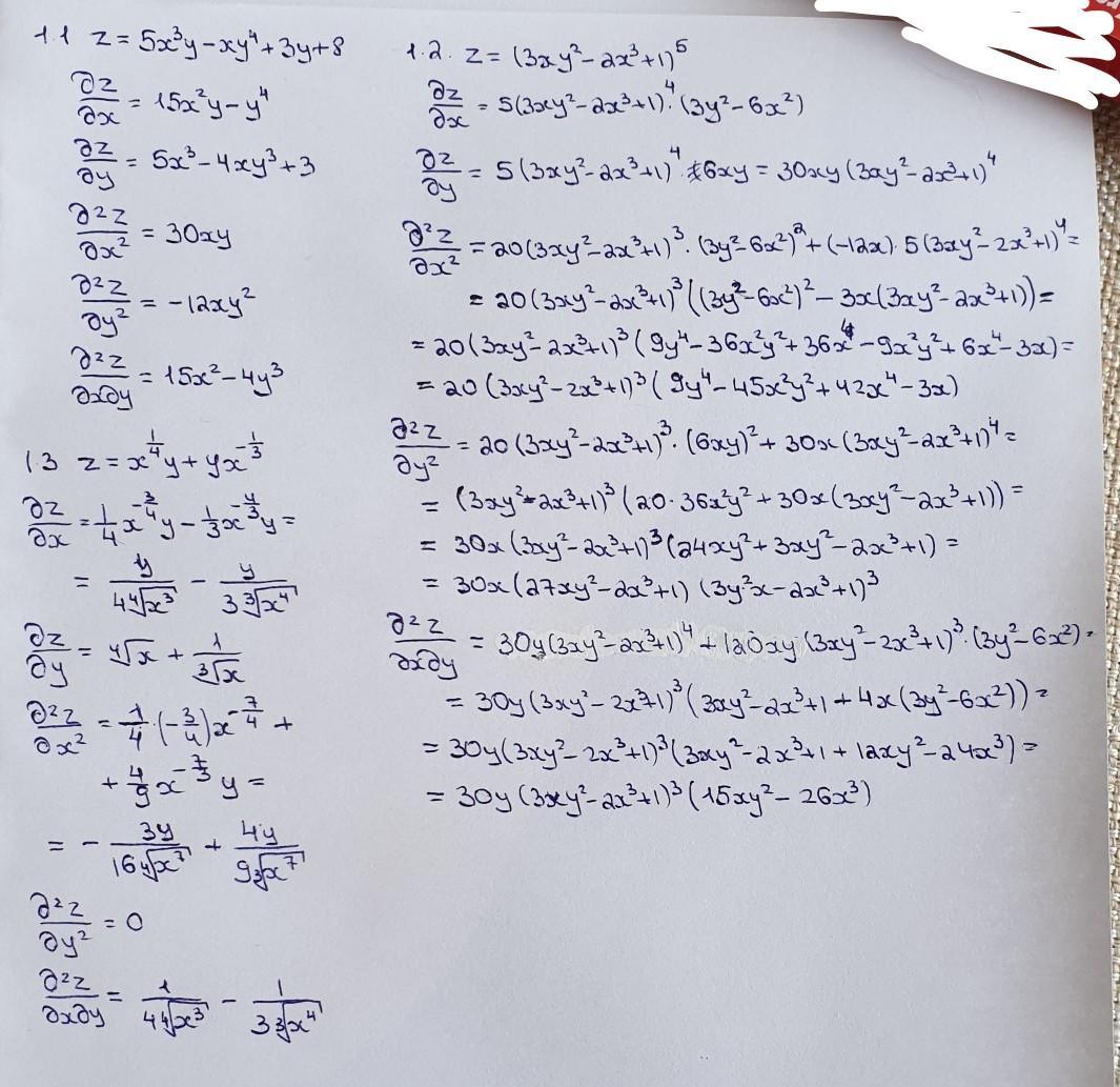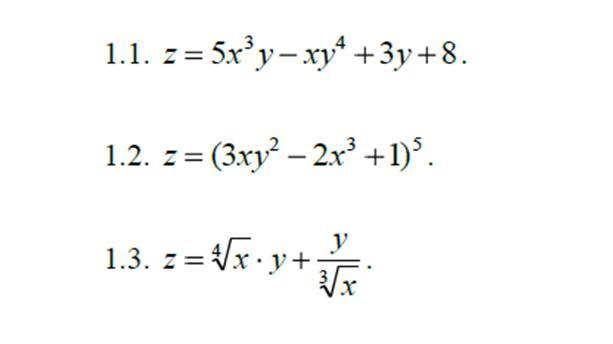 Найдите все частные производные данных функций по каждой из независимых переменных