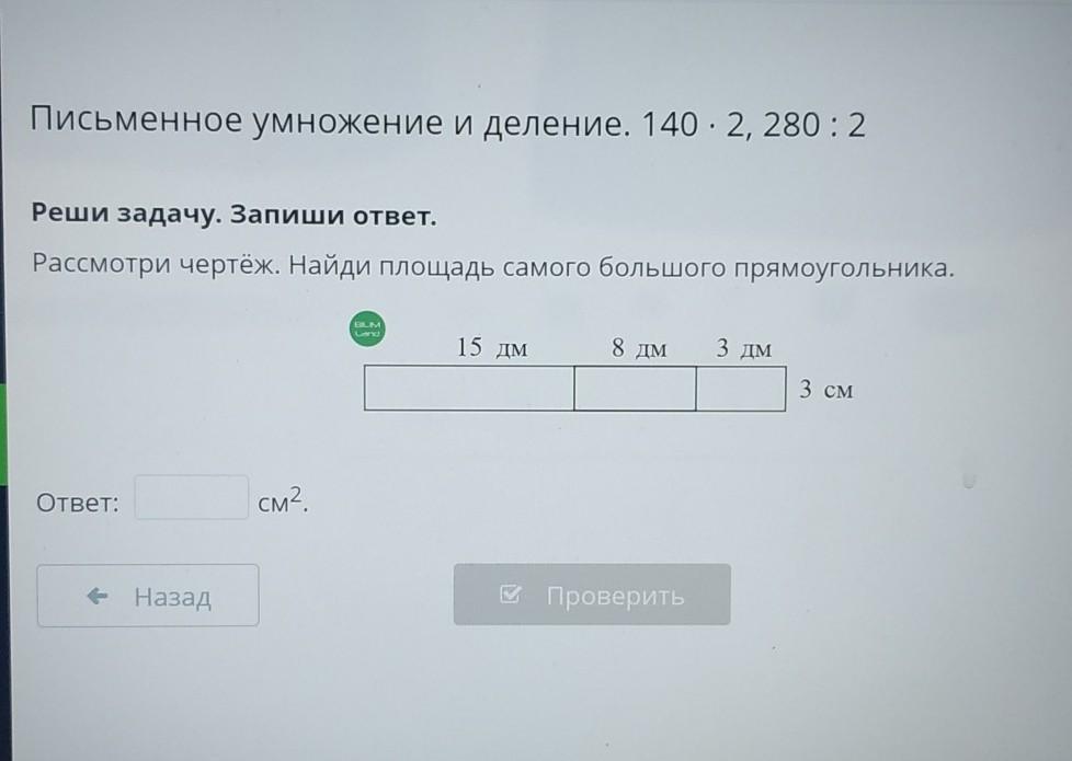 Рассмотри чертёж. Найди площадь самого большого прямоугольника.