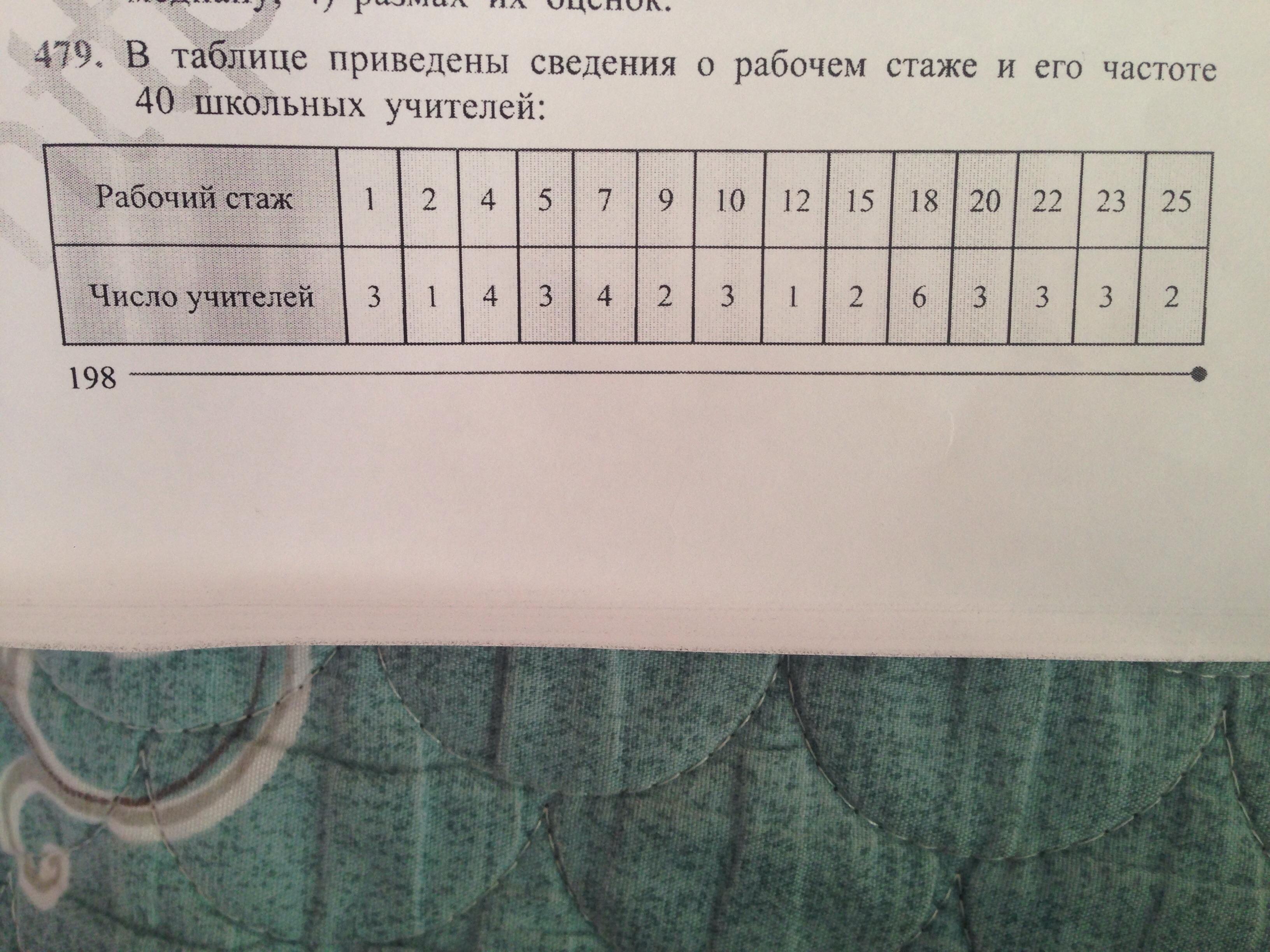 в таблице приведены сведения о рабочем стаже его частоте 40 школьных учителей. для этой выборки Найдите среднее значение моду , медиану, размах ,постройте полигон частот