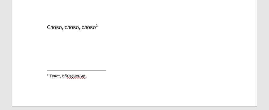 Для создания сноски необходимо перейти в раздел "Ссылки" (в верхнем меню), нажать "Вставить сноску". На месте текстового курсора появится цифра в верхнем индексе, в конце страницы добавится сноска. Пример на фото.