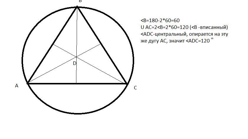 тогда D-точка описанной окружности, и угол 120 искомый