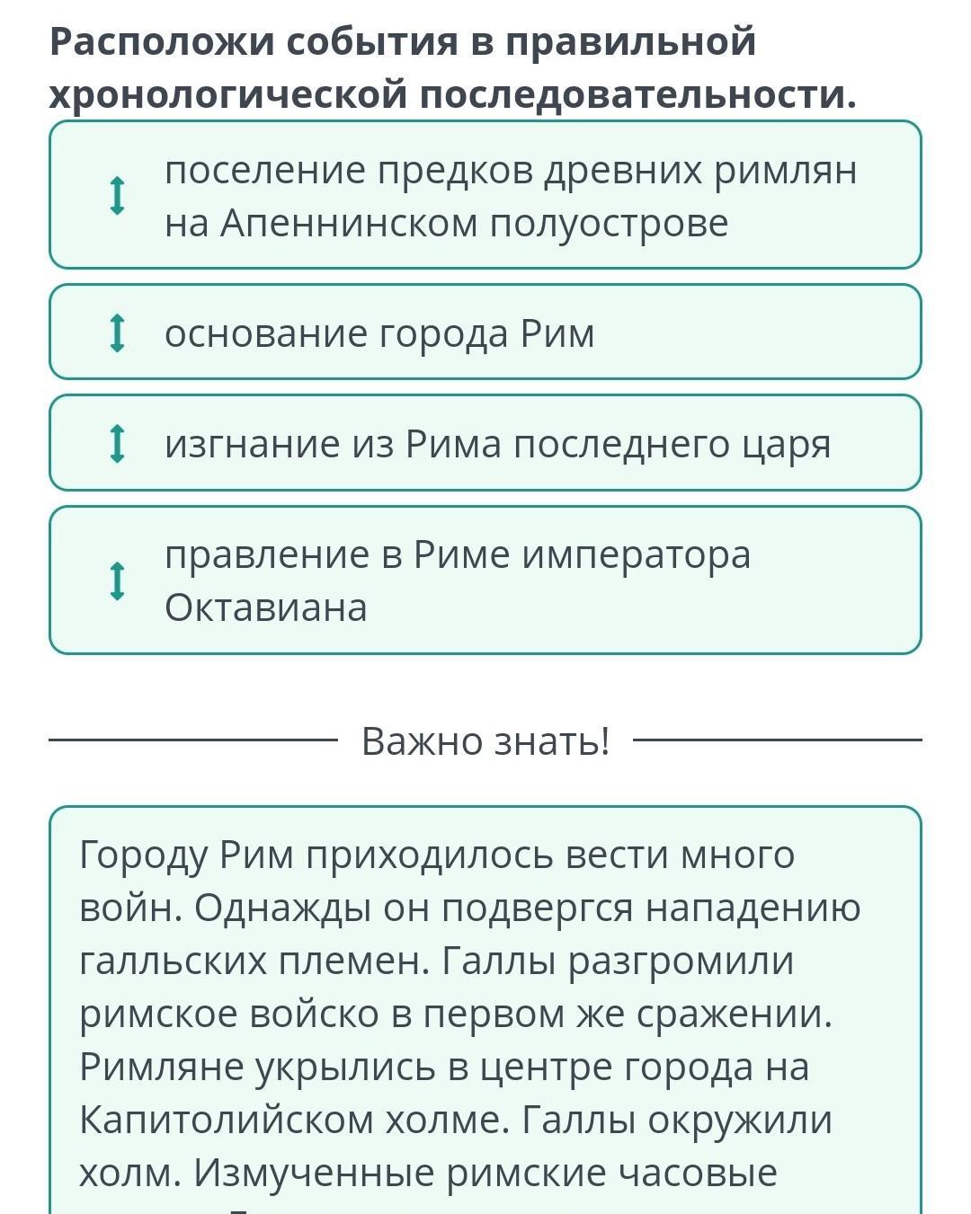 асположи события в правильной хронологической последовательности.