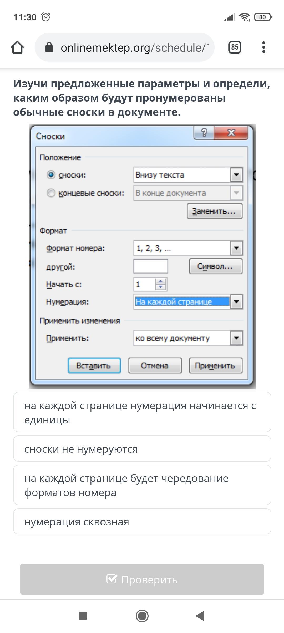 Изучи предложенные параметры и определи,каким образом будут пронумерованы обычные сноски в документе.Сноски.Урок 1