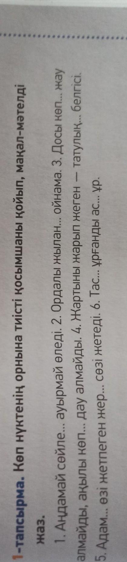 Аңдамай сөйлеген ауырмай өледі.Ордалы жыланмен ойнама.Досы көпті жау алмайды,ақылы көпті дау алмайды.Жартыны жыртып жеген татулықтың белгісі.Адамның өзі жетпеген жерде сөзі жетеді.Таспен ұрғанды,аспен ұр.