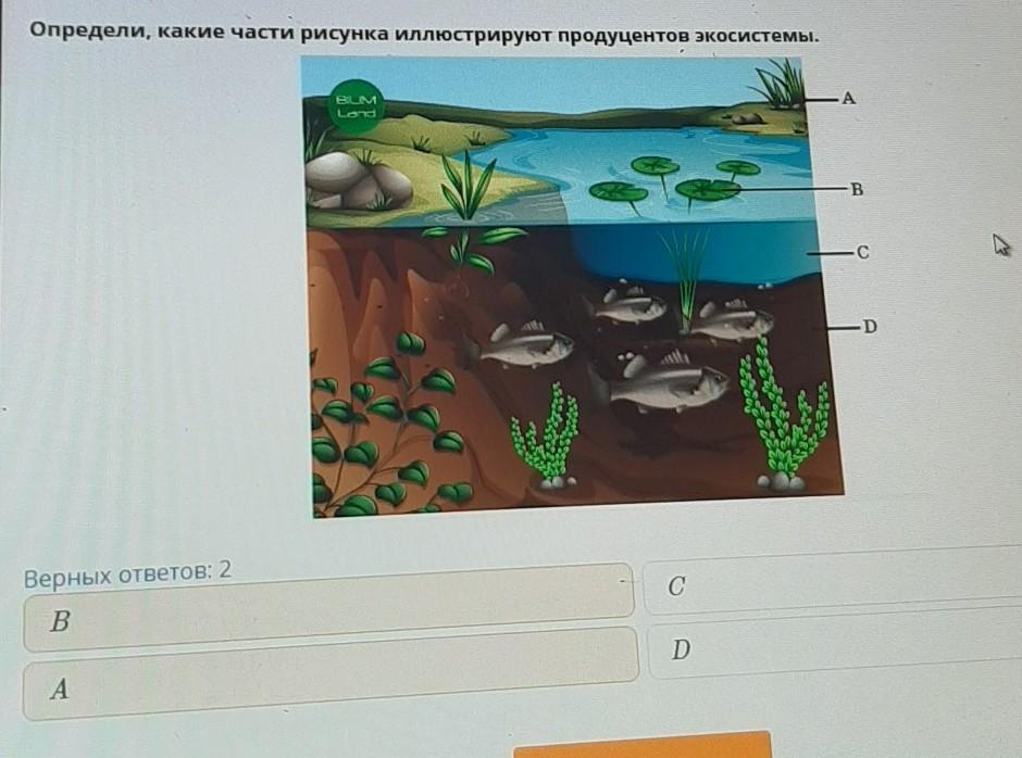 Определи, какие части рисунка иллюстрируют продуцентов экосистемы,
