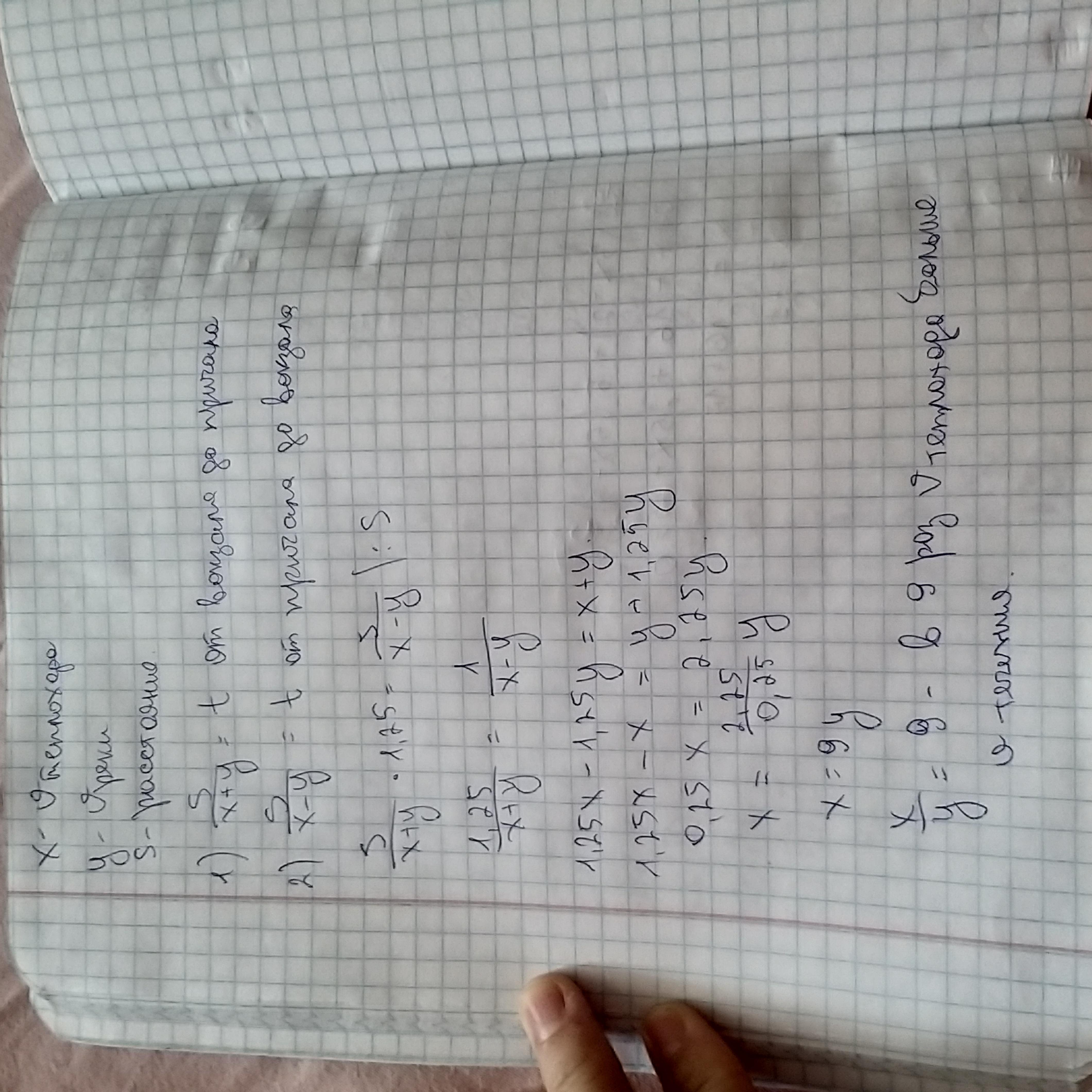 Когда Валя катался на теплоходе по Москве-реке, он заметил, что от Северного речного вокзала до причала теплоход доплыл в 1,25 раз быстрее, чем обратно. Скорость теплохода относительно воды не менялась. Определите отношение скорости теплохода относительно воды к скорости течения реки.