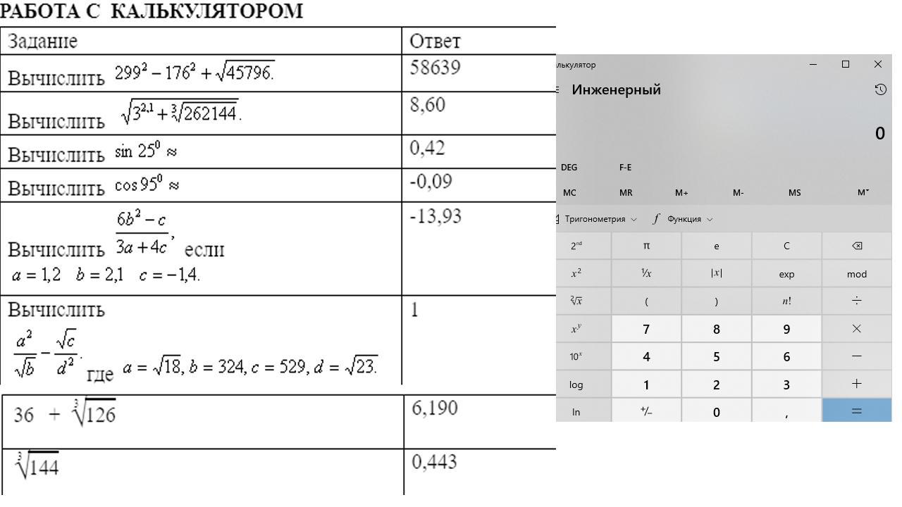 ДАЮ 100 БАЛЛОВ, НУЖНЫ СКРИНЫ! Помогите пожалуйста нужно решить использовав стандартный калькулятор Windows, калькулятор инженерный нужно решить с помощью калькулятора чтоб получить такие ответы