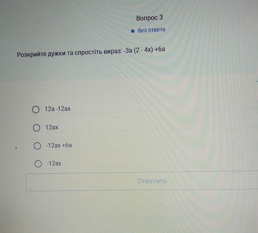 розкрити дужки -6а + 6а =0 і залишається 12ах