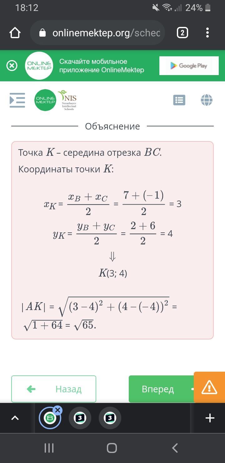 Даны координаты вершин треугольника ABC: A(4; –4), B(7; 2), C(–1; 6).