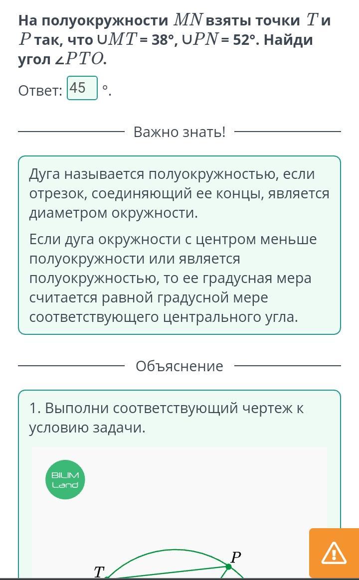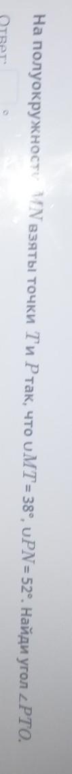 На полуокружности МN взяты точки Ти Ртак, что оMT + 38", oPN 52", Найди угол 2РТО,