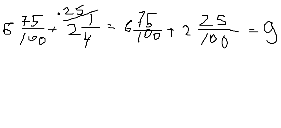 6.75 +2 ЦЕЛЫХ 1/4=6.75 + 2.25 = 9