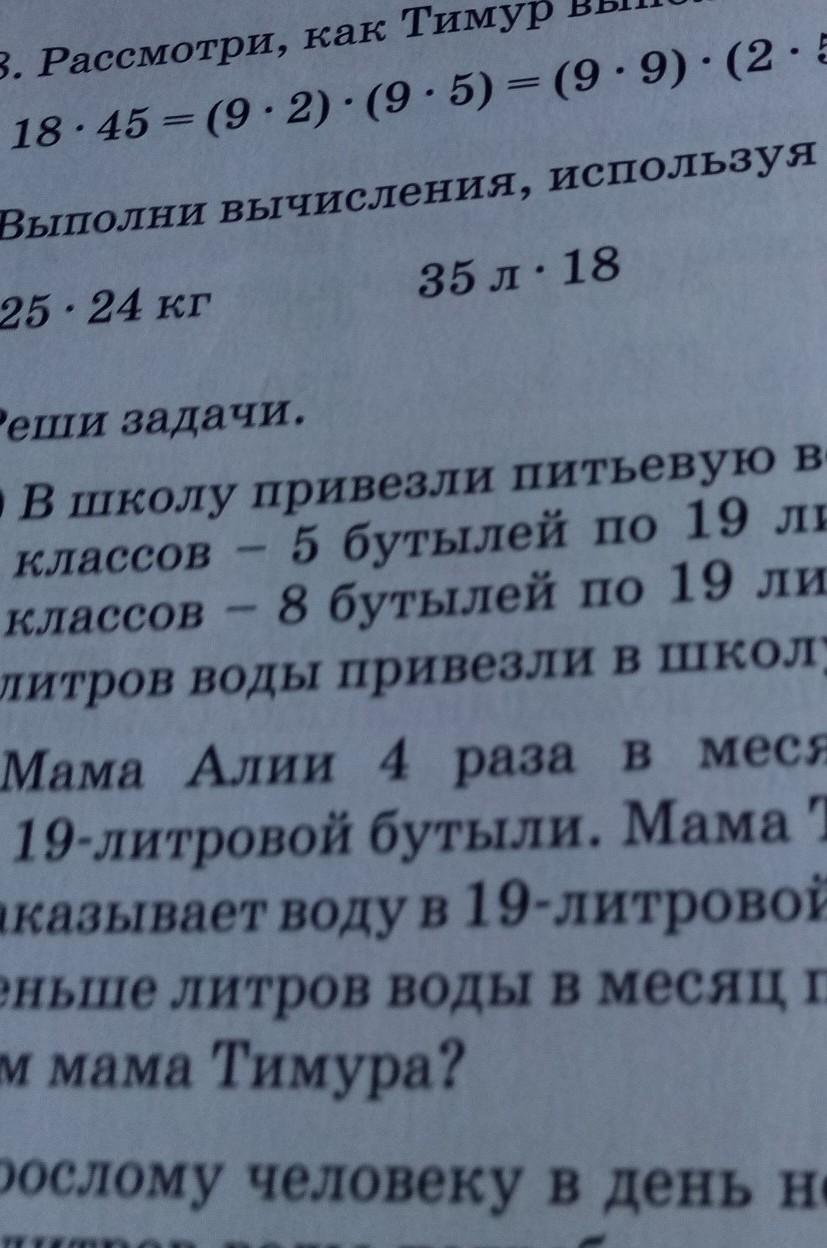 Реши задачу в школу привезли питьевую воду для начальных классов - 5 бутылей по 19 литров. Сколько всего литров воды привезли в школу! Срочно!!!!
