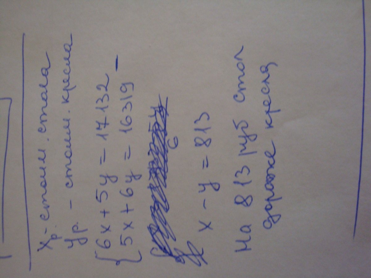 стоимость 6 столов и 5 кресел равна 17132 руб . а 5 столов и 6 кресел равна 16319 руб . на сколько руб стол дороже кресла
