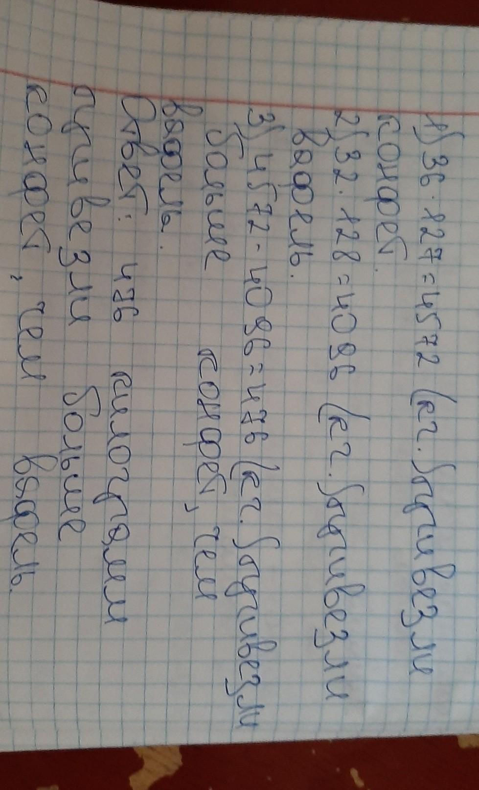 В ларёк привезли 127 коробок конфет по 36 кг и 128 коробок вафель по 32 кг на сколько больше кг конфет чем вафель привезли