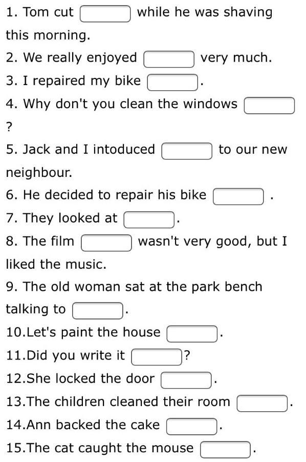 У кожній з них потрібно використати слова (myself,himself,herself,itself,yourself,yourselves,ourselves,themselves).