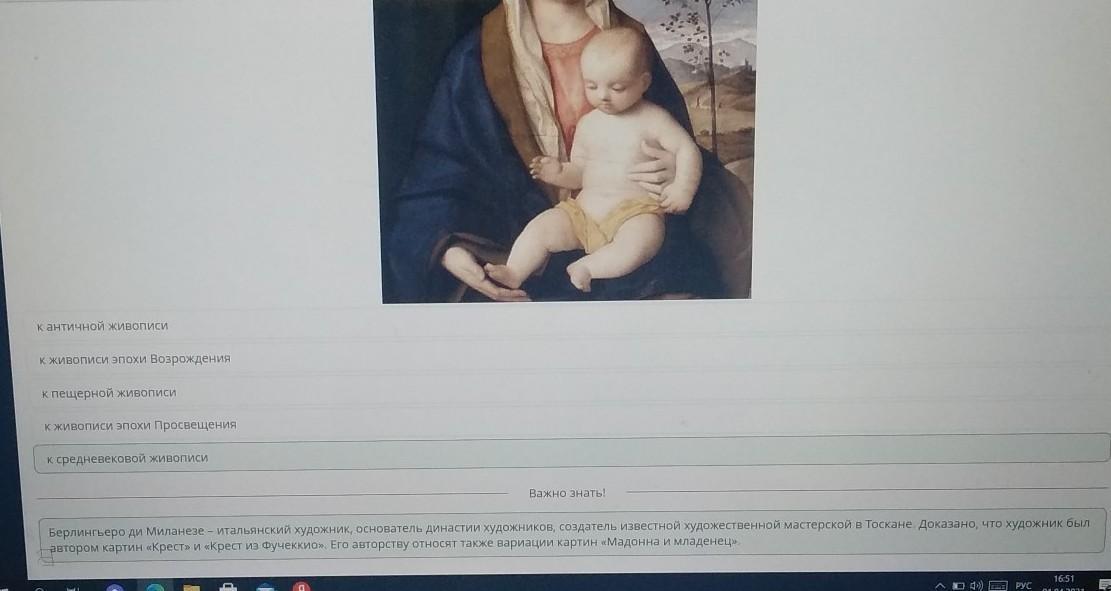 К какому хронологическому периоду относится картина «Мадонна и младенец» художника Берлингьеро ди Миланезе?