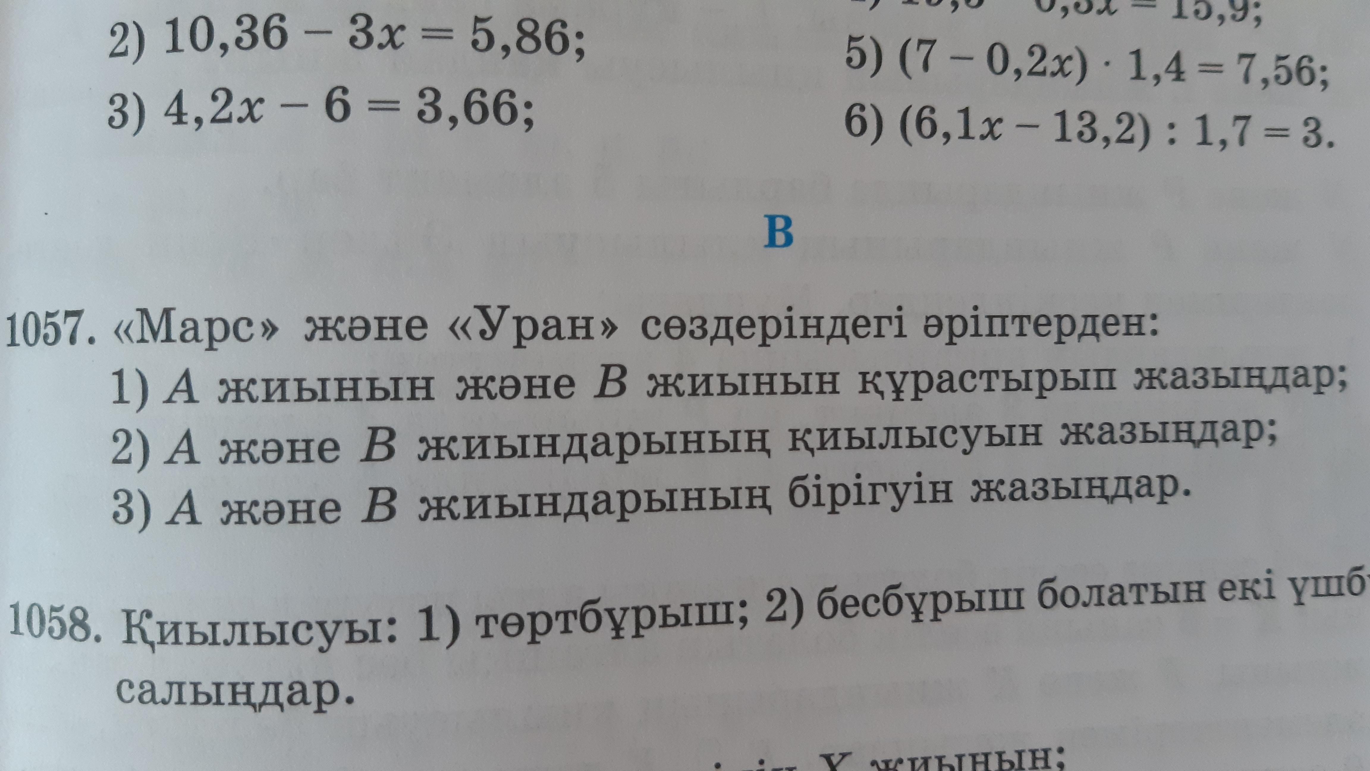 объеденение А и В = (м, а, р, с, у, н)
