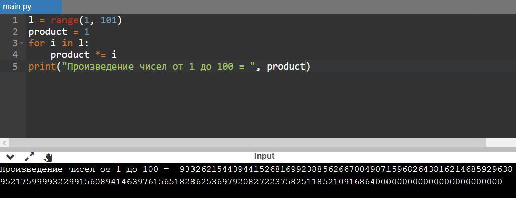 СРОЧНО. найти произведение чисел от 1 до 100.python