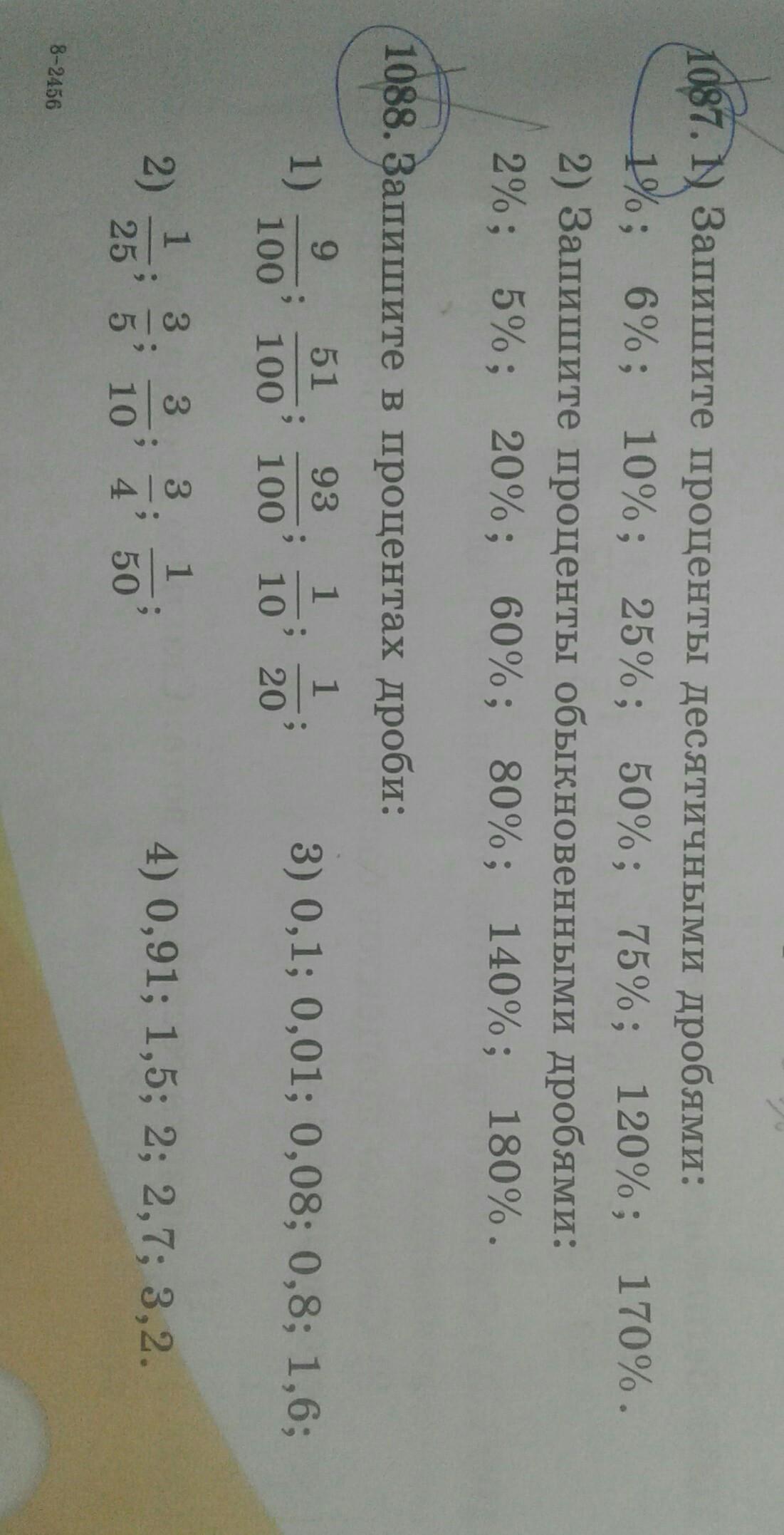 1087. 1) 1%=0,01; 6%=0,06; 10%=0,10; 25%=0,25; 50%=0,50; 75%=0,75; 120%= 1,20; 170%= 1,70.