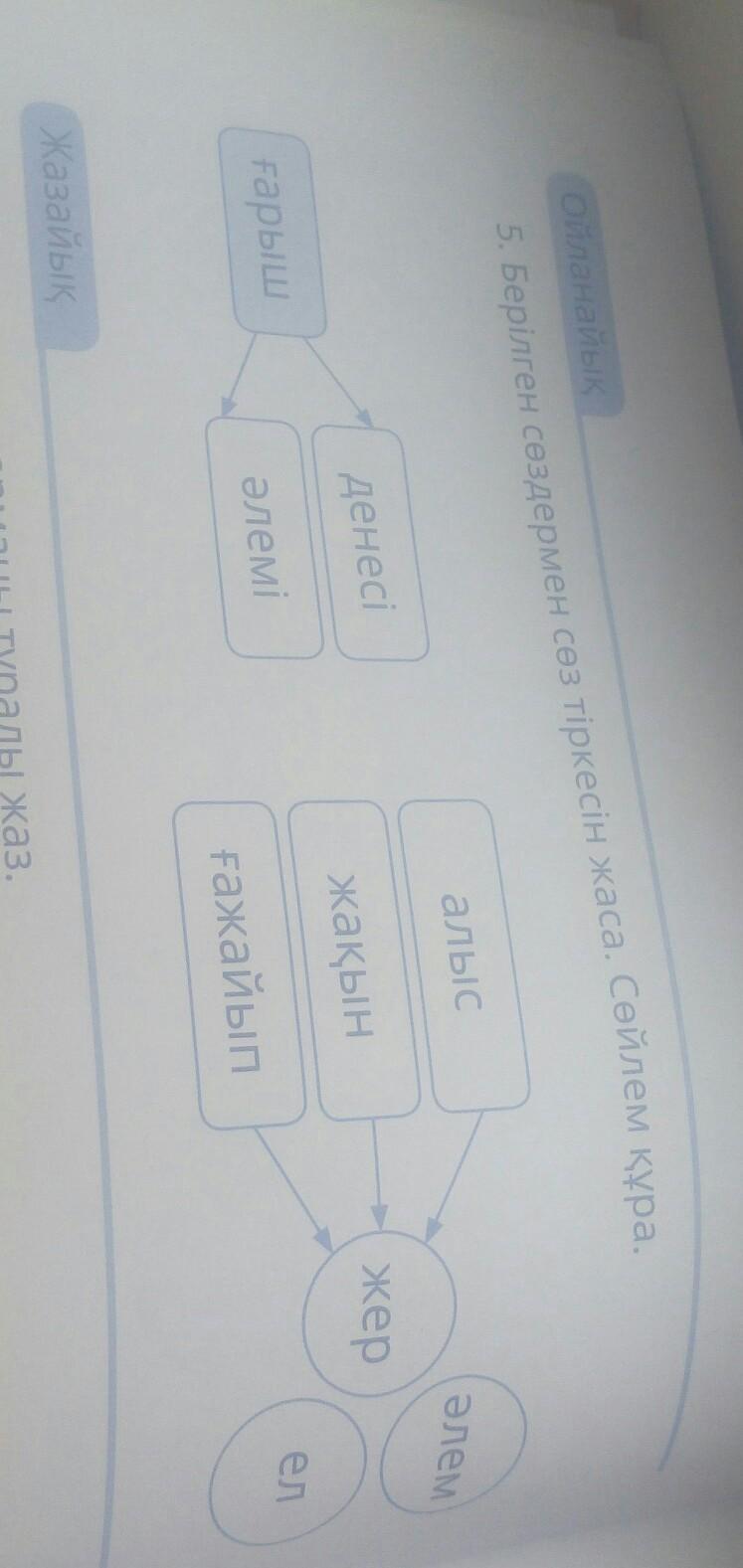 5. Берілген сөздермен сөз тіркесін жаса. Сөйлем құра.