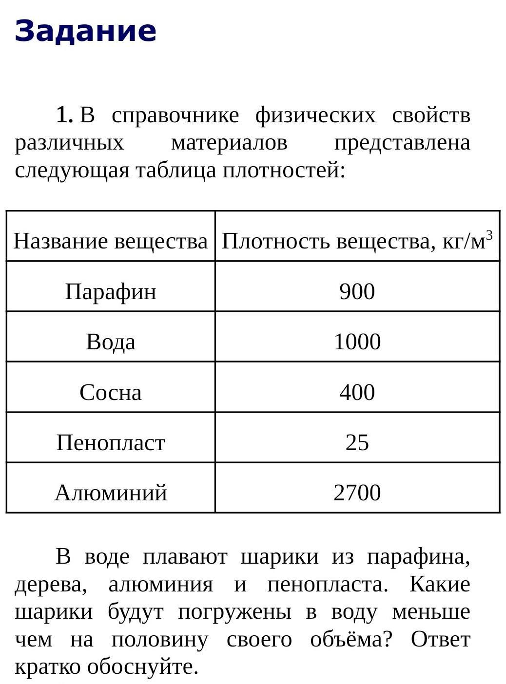 плотность данных веществ меньше плотности воды в 2 раза. Соответственно они будут погружены менее чем на половину