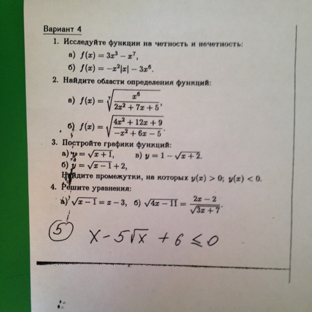 В 4 задании под а)Возведи обе части во 2степень ^2.В первом выражении корень убирай.А второе выражение возводи во 2степень.Потом x в левую часть и известные в правую и все)