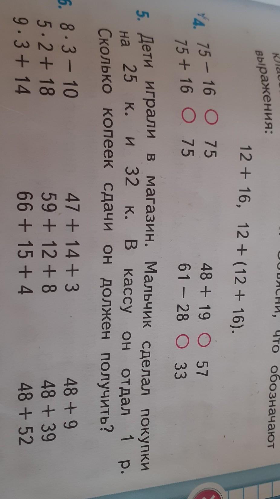 1) 25 + 32 = 57 (к.) - мальчик потратил на покупки.