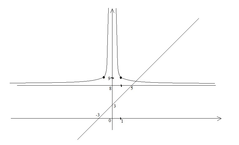 как видим из графика, функция на отрезке [1; 2] монотонно убывающая, поэтому на этом отрезке она достигает своих минимального и максимального значений на границах: