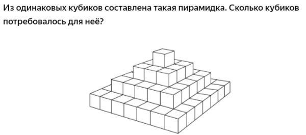 Начнём с самого низа. 1 ступень (начиная снизу) - имеет в одном ряду - 7 кубиков. Значит, 1 ступень - 7*7. Точно также считаем и другие ступени.
