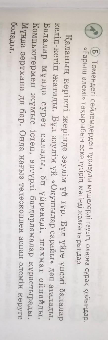 Б) Төмендегі сөйлемдерден тұрлаулы мүшелерді тауып, оларға сұрақ қойыңдар.