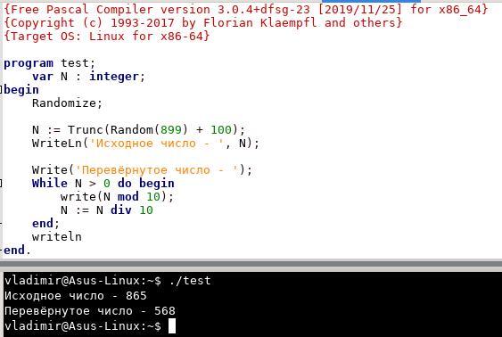 1.программа выбирает случайное трёхзначное число делает его "перевертышом", то есть записывает наоборот. например если 123 то 321.