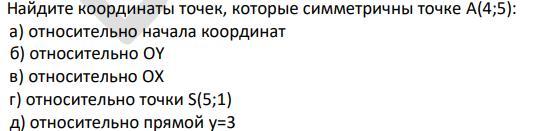 Найдите координаты точек , которые симметричны точке А(4;5)