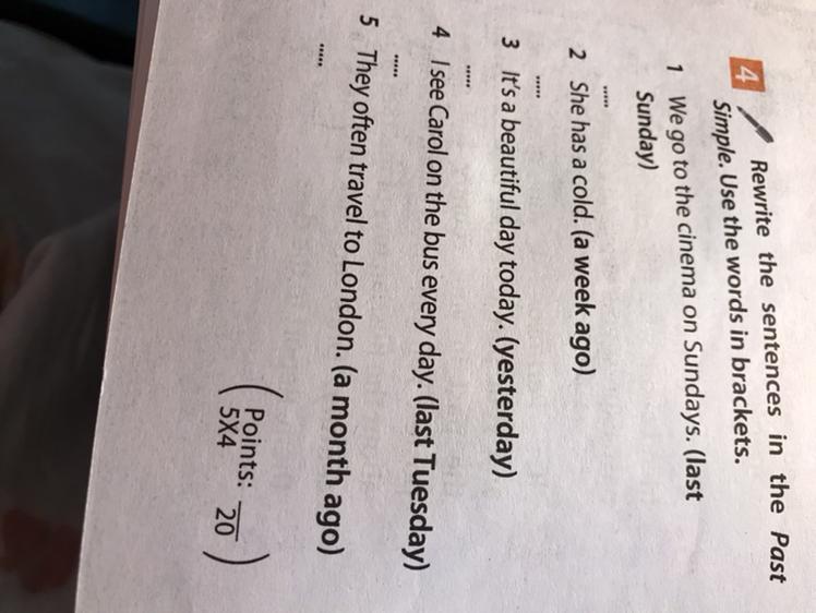 4. Last Tuesday I saw Carol on the bus (+)