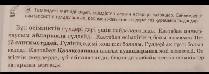 синтаксистік талдау жасап, қарамен жазылған сөздерді сөз құрамына талдаңдар.